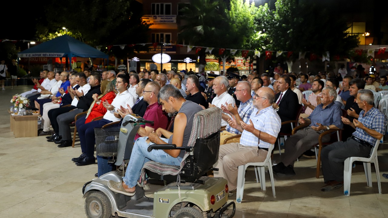 Program, 15 Temmuz’da hayatını kaybeden şehitler için saygı duruşu ardından İstiklal Marşı ile başladı. Kur’an-ı Kerim tilaveti ile devam eden programda Köşk Kaymakamı Tuğba Polat ve Belediye Başkanı Nuri Güler konuşma gerçekleştirdi.